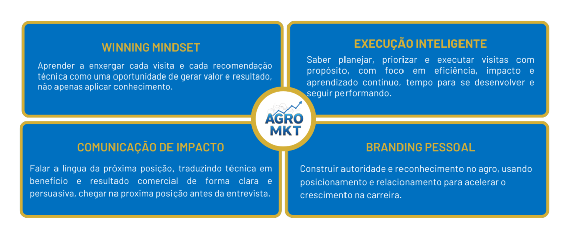 São pilares que realmente sustentam a evolução profissional no agro. Antes de pensar em ferramentas, metas ou tecnologia, é preciso desenvolver a base que diferencia quem cresce rápido de quem fica estagnado